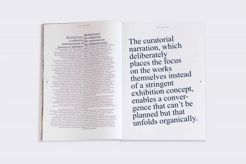 The catalogue mirrors the tone and tension of the exhibition at FAHRBEREITSCHAFT Berlin in November 2024, releasing its energy with each page turned.