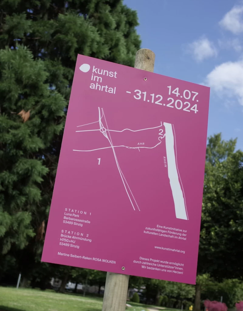 Female sculptor Martine Seibert-Raken, who lives in Unkel am Rhein, kicks off the exhibition series with her pink cloud sculptures. The expansive form of her cloud-like landscapes enters into a dialogue with the surroundings, whereby the wire objects stand in an exciting contrast to nature. By bending, winding and connecting, the artist creates organic installations that invite you to linger, connect and vitalise.